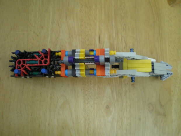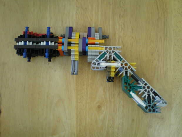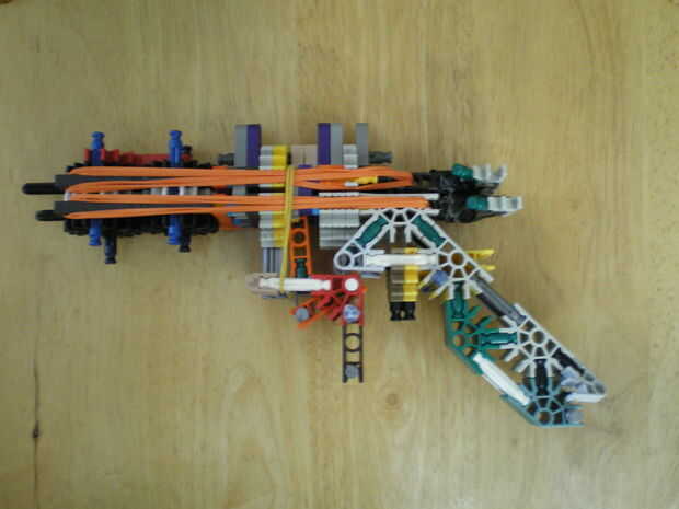 Sólo un simple semi-auto diseño de Oblivitus de sus conceptos de K'nex. Tengo que decir, creo que esto no es tan fácil de usar, potente y útil que sus otros pseudo semi-automática de diseño (apila barriles en lugar de lado a lado). Sus contras compen