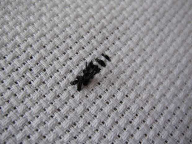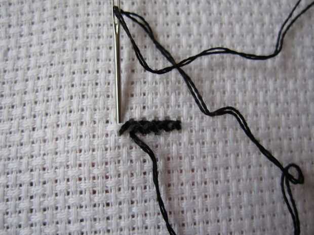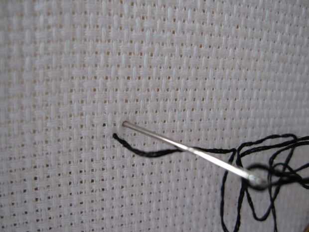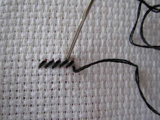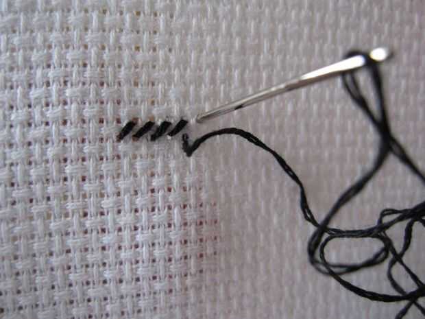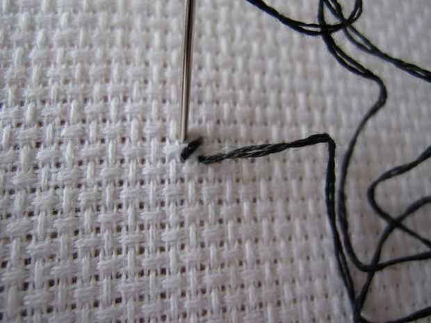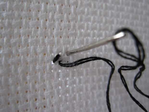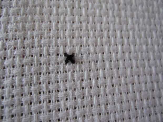 Cuando se tienen grandes áreas para punto de Cruz, hacer todos los cruces de media antes de volver y terminarles. Le permite guardar la seda y para que se vea limpio. Todos sus cruces deben ser en la misma dirección (desde abajo izquierda a arriba a la derecha y luego de abajo a la derecha a la superior izquierda, o lo contrario, pero permanecer coherente).