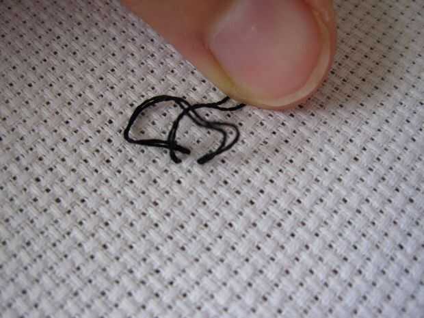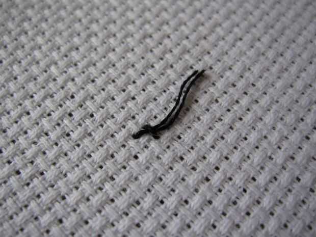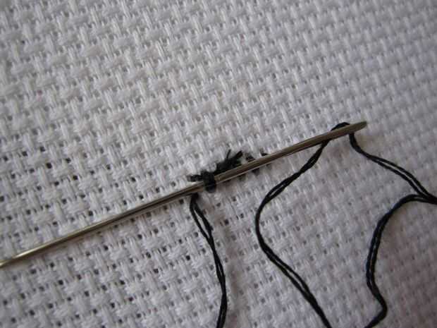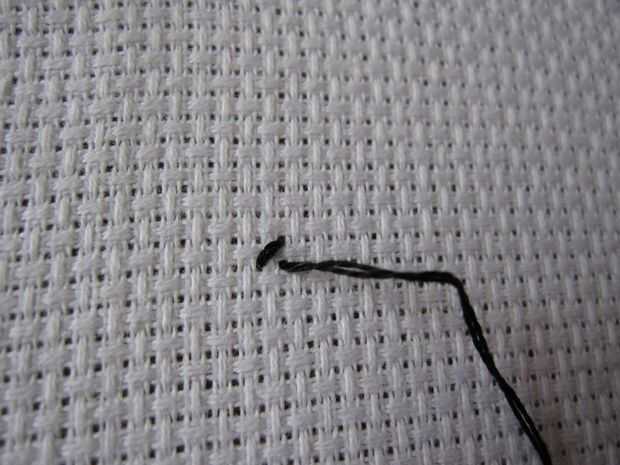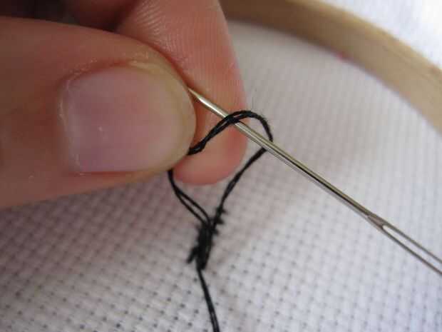Para detener su hilo y utilizar otra, terminar la media Cruz que está haciendo, y luego ir al revés de la tela. Pegue su aguja con una hebra de hilo, y luego en el pequeño bucle que acaba de crear. Apriete y corte el hilo.