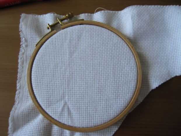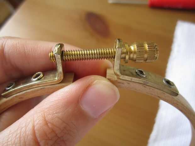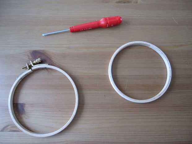 El aro es solía stetch la tela y que sea más fácil coser en él. Separe los dos círculos. Poner uno más pequeño en una mesa y coloque la tela sobre él. Utilice el destornillador en el círculo más grande para ampliarla. Poner el círculo más grande en el círculo más pequeño y la trampa de la tela entre los dos. Ajustar la tela antes de apretar el círculo más grande.