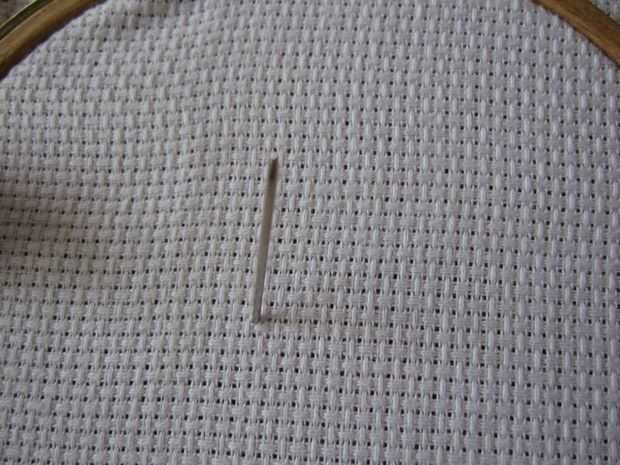 Trate de visualizar los cuadritos de la tela. Estás en la esquina inferior izquierda de un cuadrado, ahora poner la aguja a través de él en la esquina superior derecha y tire a través de (nuevamente, no del todo). Usted debe han hecho una diagonal mitad Cruz. Introduzca la aguja (ahora debe ser bajo la tela) en el agujero que está justo debajo de su pasado uno. Como haces esto, el hilo hará un pequeño bucle bajo la tela. Atrapar el extremo suelto de la seda en el mismo. En el lado derecho de la tela, ahora está en la esquina inferior derecha de la Plaza. Introduzca la aguja a través de ella en el orificio superior izquierdo. Se debe hacer una cruz pequeña.