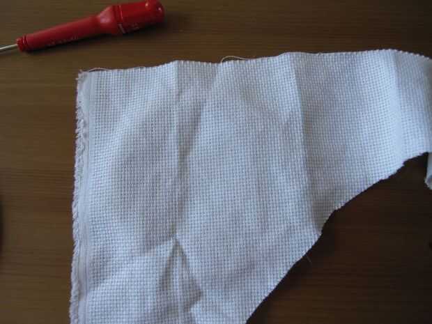Tomar un trozo de tela y práctica siguiente antes de comenzar realmente el proyecto.
