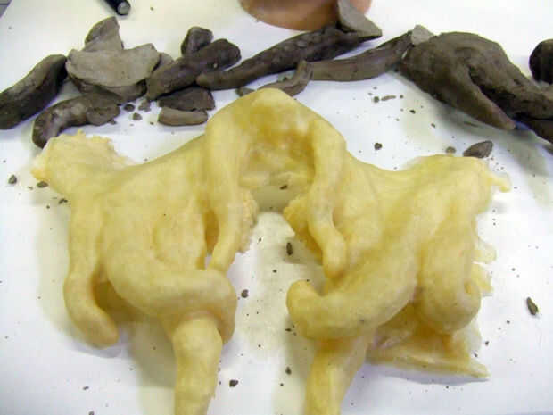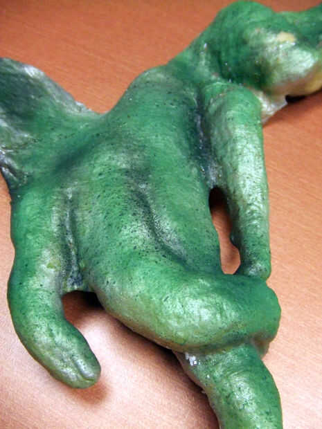 I luego recortado y rellena los tentáculos con almohada de bateo y pintado con pintura de látex, diluida con alcohol, en un aerógrafo. La pintura comenzó eventual a desprenderse, así que si usted está buscando una opción más permanente de colorante, mirar a otra parte.