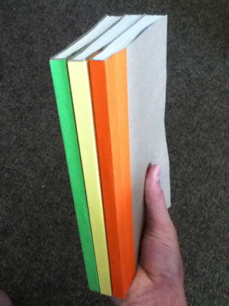 Pero entonces tengo una idea de la bibliotecaria de mi novia, y decidí convertir en cuadernos! Todo ocurrió en primero era guardar las páginas impresas que se fueron en blanco en un lado, doblar por la mitad y ponerlos en una pila poco aseada en la esquina trasera de mi escritorio.