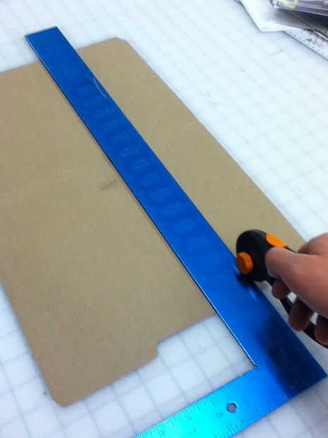 Cortar la carpeta de archivo hasta el tamaño de su papel. Puede ayudar a hacer la tapa ligeramente más grande que las páginas en caso de cambio de cosas mientras que usted está cosiendo. Entonces el exceso puede ser cortado una vez que está obligado.