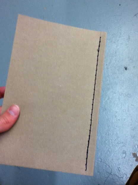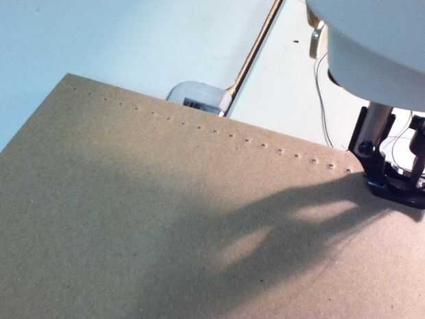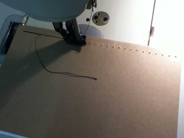 Si no tienes una máquina de coser para trabajo pesado, puede que necesite perforar los agujeros a mano (por ejemplo con un martillo y un clavo pequeño), o perfora agujeros en unas pocas páginas a la vez y alinee más adelante.