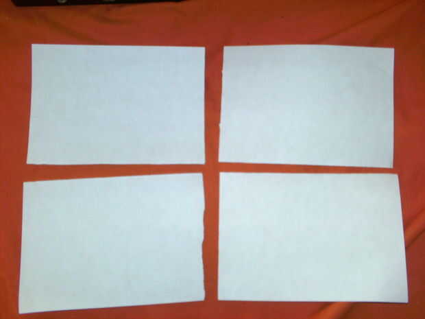 Rasgó cada hoja A4 hasta que hizo cuatro hojas A6.