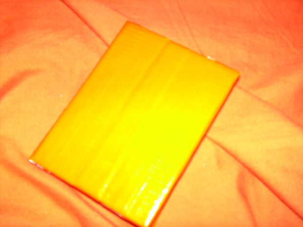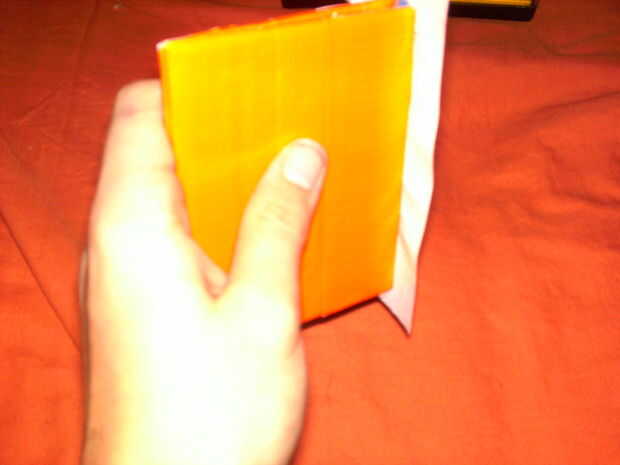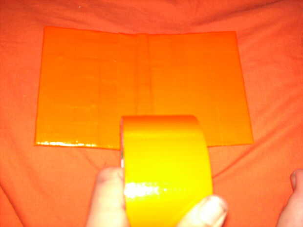 Luego tomar la pieza de la espina dorsal y poner alguna cinta adhesiva debajo de él, palo ambos cubre y la columna vertebral Junta, doblar la pieza superior e inferior de la columna de cinta del conducto sobre la parte superior e inferior de las piezas de cubierta. Voltear la tapa y coloque otra tira más de la mitad del libro en el lado, asegúrese de que los extremos de la cinta en el interior de la cubierta, esto se cubrirán pronto.
