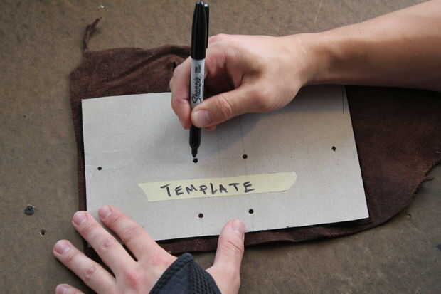 Utilizando un marcador permanente (o un lápiz si va a marcar el cuero), traza alrededor del exterior de la plantilla. Asegúrese de marcar los orificios.