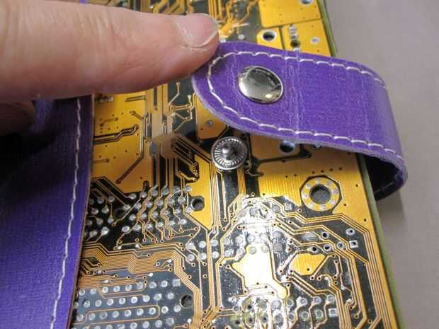 Cerrar el libro, con el fin de determinar el lugar correcto para el botón snap. Tenga en cuenta que todavía debe haber espacio para una pluma!