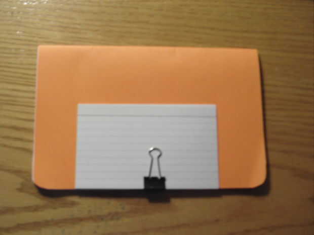 Doblé las esquinas exteriores para que se vea un poco más a una Moleskine. También he añadido un broche aprietapapel y algunas tarjetas para agregar funcionalidad de "Hipster PDA".