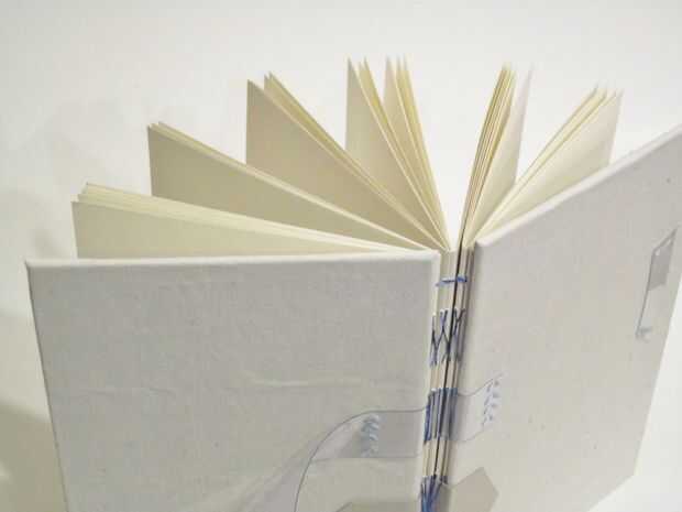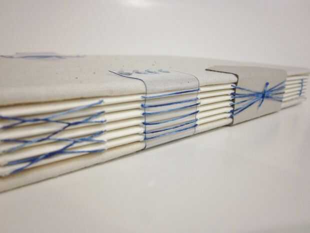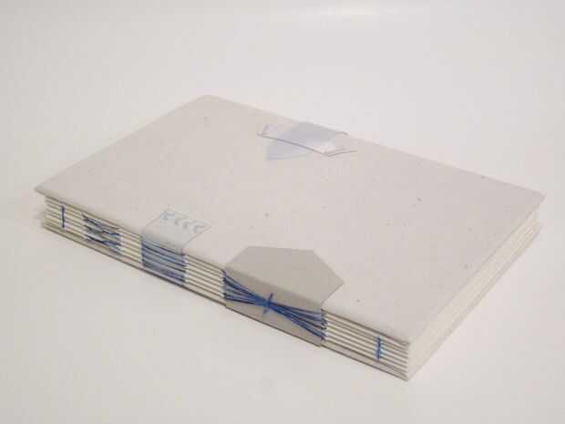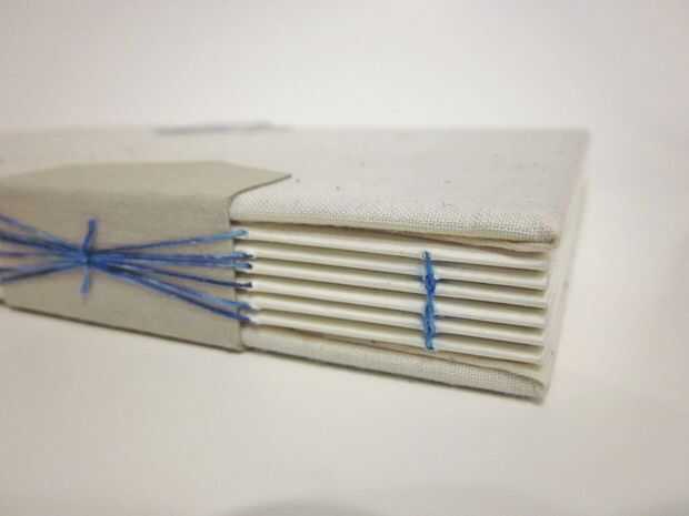 El libro fue concebido originalmente como teniendo copto atascamiento de la puntada, pero yo no podía perforar agujeros a través de las cubiertas y encuadernación copta involucrados coser a través de agujeros en la portada del libro. Así que terminé encuadernación el libro, utilizando un método que no implicó perforando agujeros en las cubiertas.