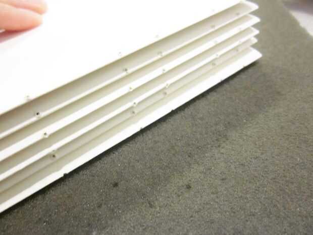 este sketchbook/cuaderno es mi segundo intento de encuadernación longstitch. Pensé que los longstitch típica "patrones" eran un poco aburridos, así que hice mi variación en longstitch.La cubierta está hecho de algún cartón delgada y flexible que