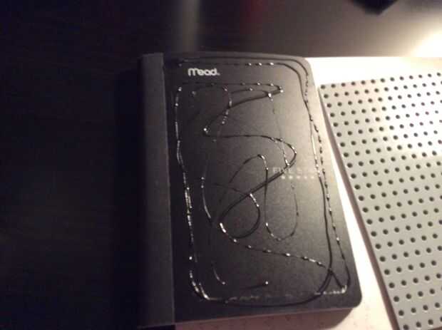 Para esto que acabo de hacer que las tablas eran del mismo tamaño que la parte delantera del libro de nota, y pegado a la parte posterior y frontal con superglue.