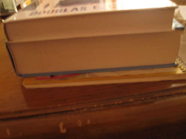 Ahora, utilice a algún tipo de accesorio para suavizar la cartulina sobre el papel. Alíselo totalmente, eliminar todas las burbujas y las arrugas y protuberancias. Utilicé una plegadora para este paso, pero se puede usar cualquier cosa para este proceso (creo que Bob utiliza una cuchilla plástica de masilla en su video). Entonces, acaba de poner el papel debajo de algo bastante pesado para que secará completamente (yo uso algunos de mis libros de colegio)