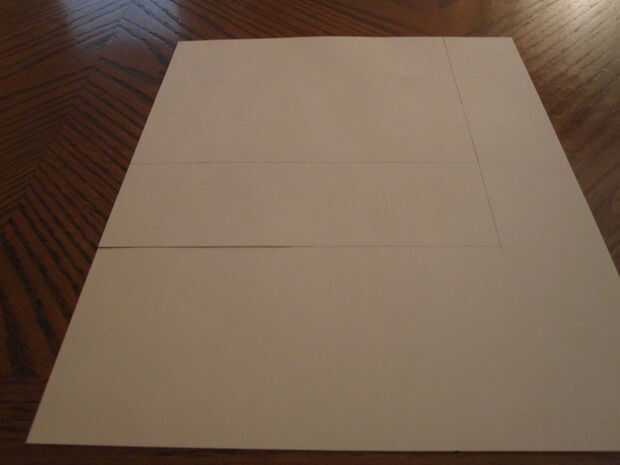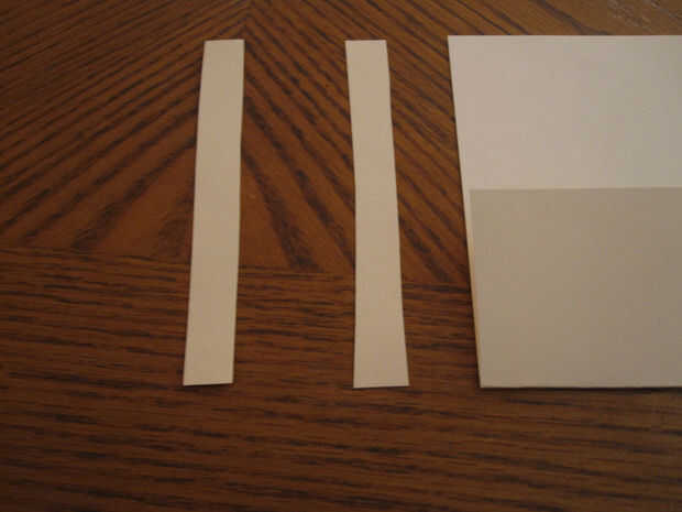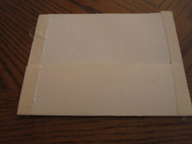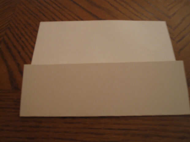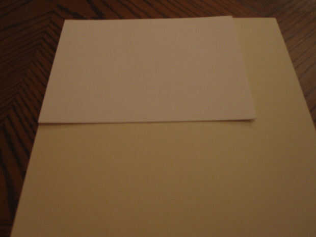 Hice mío fuera alguna crema cartulina colores tenía por ahí. Utilice la cubierta como plantilla y marque la altura y la anchura de la pieza de cartulina. Sin embargo, no cortarlo hacia fuera bastante todavía. Hacer otro Marque 2" debajo del lado largo de la tapa y corte a lo largo de esa línea. Esto nos dará un espacio extra para doblar el bolsillo que necesitamos.