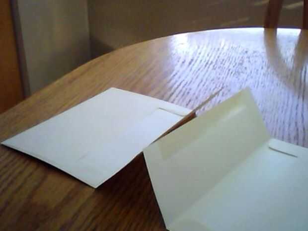 Tomar dos sobres y manchan las 'aletas' con pegamento. Luego tomar una aleta e introducirlo en el bolsillo de los otros sobres. Tome la aleta que está pegando hacia fuera, ponga pegamento en él y meter en el bolsillo en el borde de la cubierta.