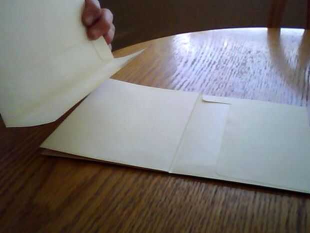 Después de haber terminado su cubierta, tomar un sobre y borrón de transferencia de 'aleta' con algun pegamento e insertar en uno de los bolsillos de la cubierta.