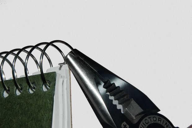 Por un lado el alambre debe doblarse para formar otro círculo en la espiral. Este es el lado que se va desplazando por el resto de la notebook. El lado opuesto sólo tiene que ser desplegada para permitir que la espiral al girar una vuelta más o menos.