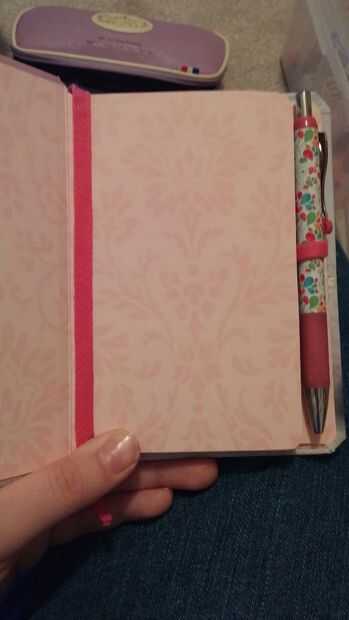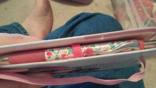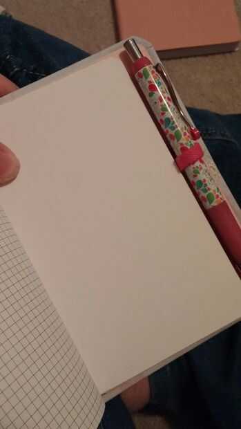 El último era el lazo de la pluma. El lazo de elástico pluma por defecto era demasiado débil y demasiado lejos de la el libro permanezca utilizable, apretamientos, estiramientos hacia fuera y me pegado en uno nuevo que era más seguro y realmente en el libro. Se adapta el lápiz elegido y se inscribe en el libro.
