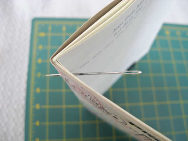 8. Utilice una aguja para empujar con cuidado pequeños agujeros en la tapa de la notebook (no me gustan las grapas pero supongo que podría usarlos).