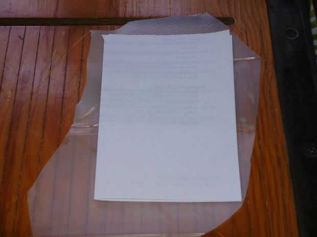 Consigue tu botella de leche (lavado) y más o menos cortar los paneles planos de cada lado. Usando el papel que ha preparado, como una plantilla, una cuchilla o guillotina para cortar las tapas, un poco más grandes que el papel.