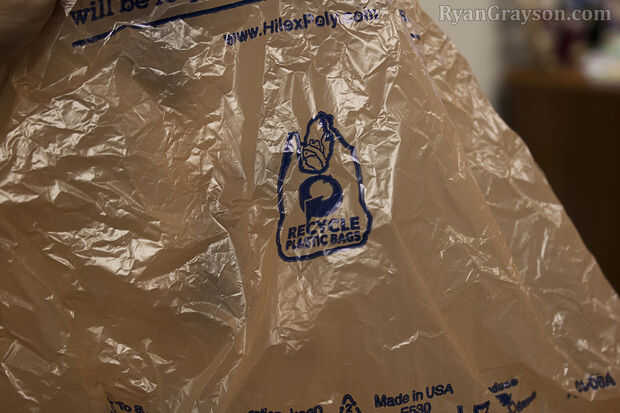 Si tienes bolsas con colores o diseños que más te guste, mejor aún, ser creativo. He hecho la cubierta en la segunda foto con una bolsa amarilla de Dollar General capa encima de un bolso de blanco.