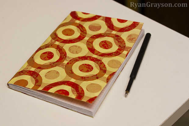 También puede utilizar marcadores para dibujar sus propios patrones en las bolsas. Esta tapa de la notebook, me decidí a dibujar un logotipo del sendero de los Apalaches (ver tercera foto). Recuerde colocar la tinta hacia abajo, o poner una capa encima.