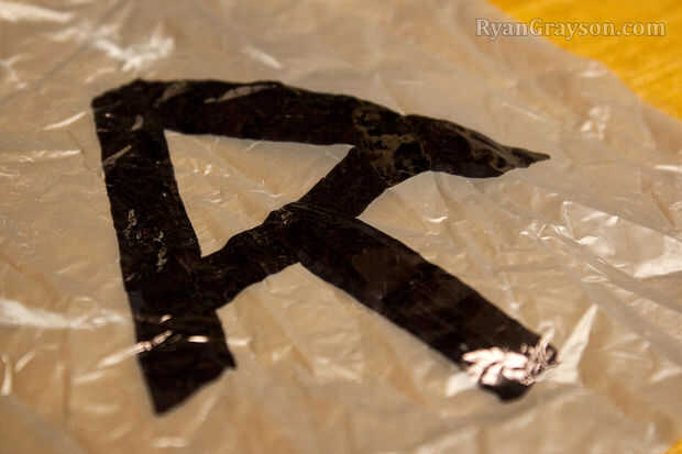 Si nos fijamos en las dos últimas fotos, verás que utilicé este mismo método en una de mis revistas para incorporar el logo "reciclar bolsas de plástico" que encontré en una de las bolsas de supermercado. También se podría escribir algo como, "volumen 1" o "viaje Yosemite en 2013," para mantener múltiples cuadernos organizados.