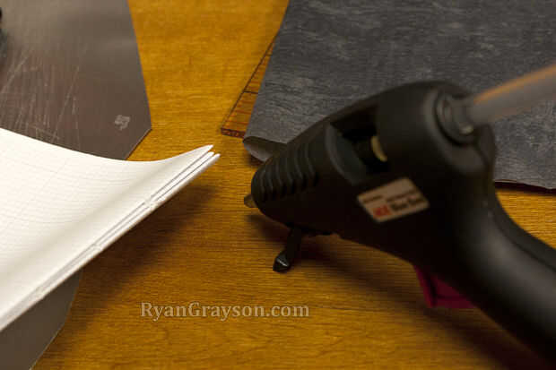 Doblar el plástico donde lo irá la columna de la libreta está bien si el plástico es más grande que las páginas, causa vamos a recortar todo hasta el final de todos modos.