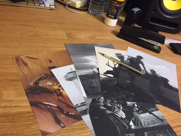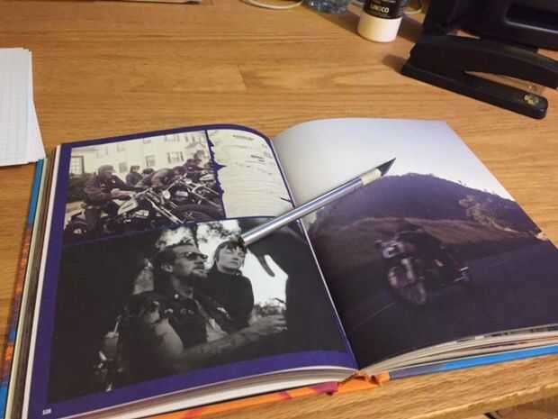Mis primeras carreras pocos simplemente consistió en un frente en blanco y contraportada. Mientras que esto definitivamente funciona, quería mis cuadernos de campo para tener un toque un poco y empecé a experimentar con fijación material de la cubierta a los exteriores del papel bristol. Lo hice mediante el uso de libros, manuales, revistas, instrucciones de ikea, etc. para ejecutar serie del cuaderno. Esta serie es de un viejo libro de Hunter S. Thompson fotos. Es bueno encontrar imágenes que tienen un pequeño espacio en blanco así que usted puede etiquetar sus cuadernos por consiguiente.