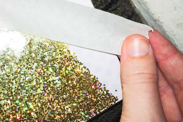 Una vez que el pegamento se haya secado, sacudirse cualquier exceso brillo y desprenda la cinta!