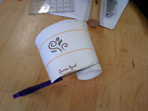 Doblar la cartulina por la mitad para encontrar el centro y luego corte a lo largo de la tapa para separar la "cup" en dos partes iguales.