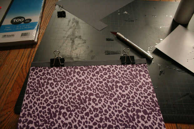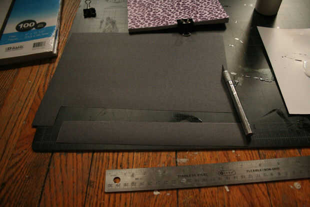 Ahora, coge un trozo de papel negro y cortar una tira que es de 1.5" de ancho y la longitud de su papel. Mi papel es de 10.5". Luego, coloque una capa de pegamento de PH en el atascamiento y enrollar por el lado de su papel, sujeción con clips binder para mantener en su lugar. Dejar secar antes de retirar los clips.