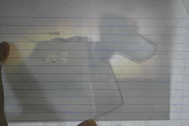 Después de encontrar la imagen de la derecha, coloque una hoja de papel en tu monitor y trazar el contorno. Funciona mejor si desactivas otras fuentes de luz, para que el fulgor de la computadora sólo iluminará su camino.