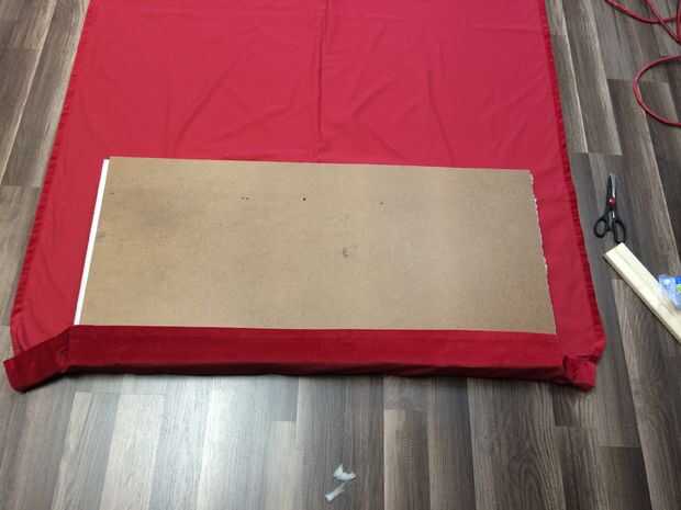 Ahora viene la parte más delicada - las esquinas. Mina doblé como un presente-ver fotos de esclarecimiento. Experimenté con otros métodos y esto funcionó mejor para mi tela. No tienen todos sus pliegues y el resultado final de la grapa. Algunas grapas y grapas como doblez de uno de ir. Se reúnen, grapa y la tela sobrante. Continúe hasta que termine. Habrá algunos grumos, no te preocupes a menos que sean trozos muy grandes realmente grandes-trim.