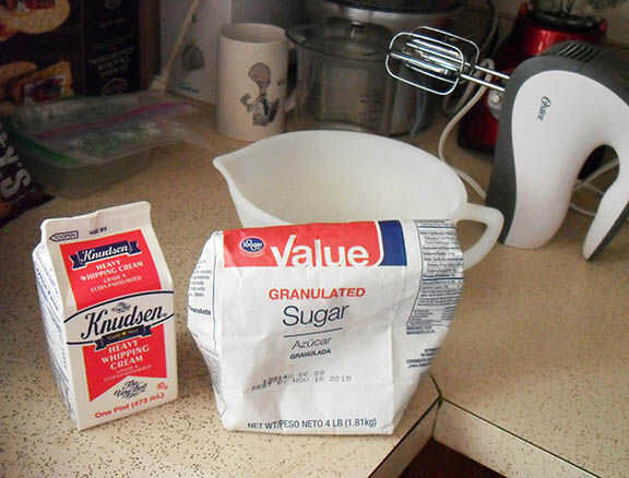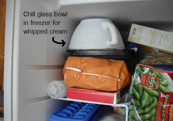 Preparación: pegue un cristal/metal recipiente en el congelador antes de empezar a. Esto es para mezclar la nata montada más adelante. Un bol frío te ayudará a obtener la consistencia adecuada de topping batida más rápido que un bol de sala temp.