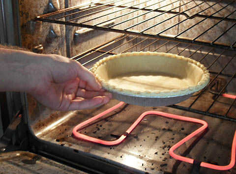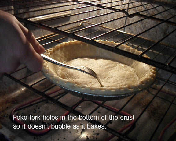 Agujeros en la parte inferior de la corteza de pincharla con un tenedor. Esto evitará burbujas mientras hornea.