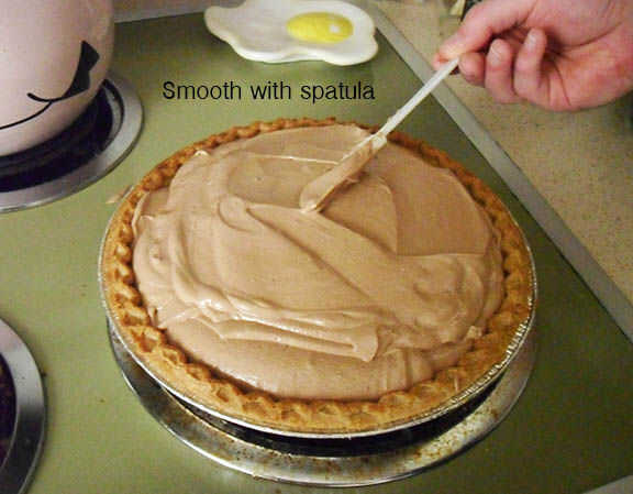 Use una espátula para ayudar a los restantes de relleno fuera de la vasija y en la corteza. El relleno debe instalarse generalmente para rellenar la corteza.