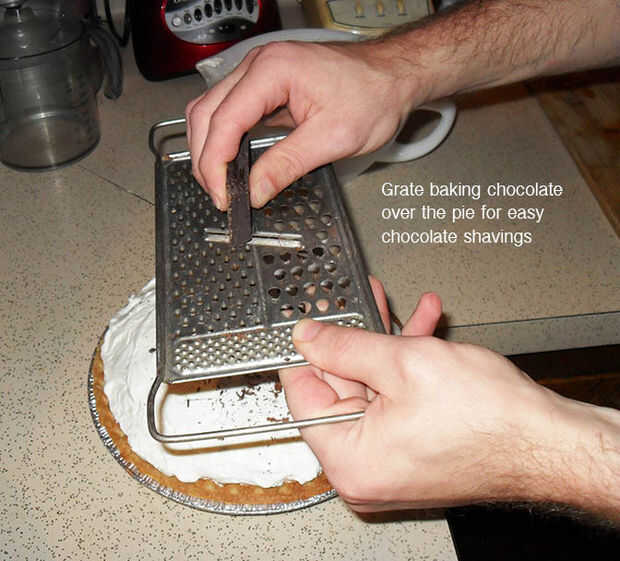 Simplemente rallar un trozo de su horneado chocolate sobre el pastel con un rallador de queso estándar. Lo voy a dar clase de una choco-confeti, en lugar de rizos completos.