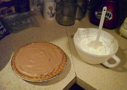 Cuando se establece su pastel, sacar la tarta y la crema batida del frigorífico.