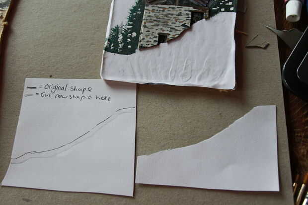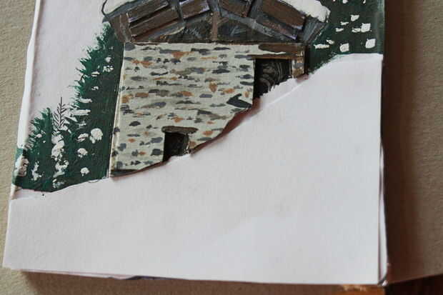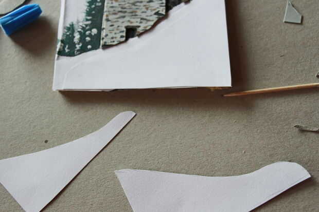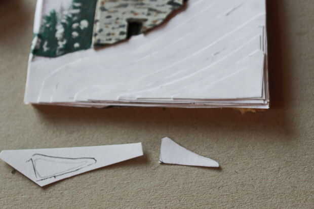 tome algunas hojas de cartulina blanca (no tengo ninguna así que tuve que hacer capas adicionales de papel normal) y cortar solo un pedazo más pequeño (hice unos 3-4-5 mm más pequeño) que el espacio en blanco existente debajo de la casa y pegamento en, no seguir construyendo en la misma técnica, eventualmente habrá ningún espacio izquierdo para pegar el papel y se viene hacia adelante una distancia significativa. (si usted tiene probablemente necesitará sólo hasta 5 capas de papel blanco de la tarjeta, tuve que poner cerca de 9 capas).