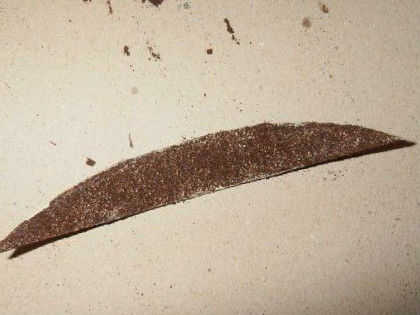 Tome un pedazo de presspaper y cortar el elemento en forma de platillo fuera de él. Doblar cuidadosamente ambos extremos del elemento no para romperlas. Por eso, mejor debería utilizar presspaper y no el ordinario. Aplicar una capa de pegamento sobre el elemento en forma de platillo y dragar con café molido también.