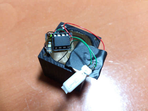El interruptor de inclinación es muy útil porque con una caja cerrada que no quieren estar abriendo y cerrando todo el tiempo, si quieres apagarlo, simplemente voltear la caja y dejarlo allí, del interruptor de inclinación desactivará el Attiny85 así que ninguna energía se consume.