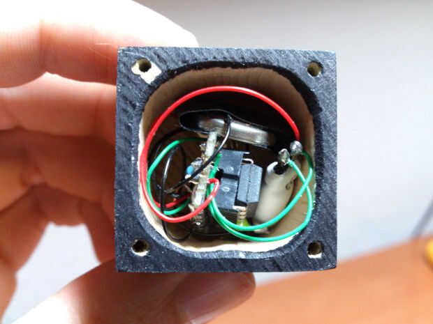 Me las arreglé para caber dentro de él sin demasiados problemas, pegué el interruptor y el LED primero con pegamento termofusible.