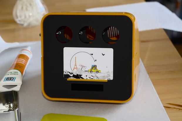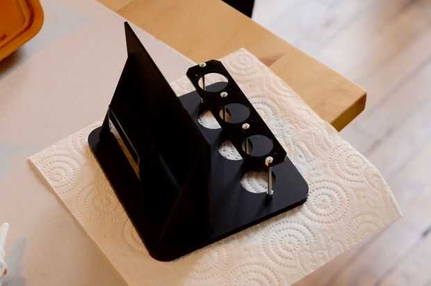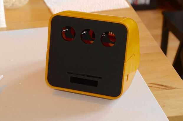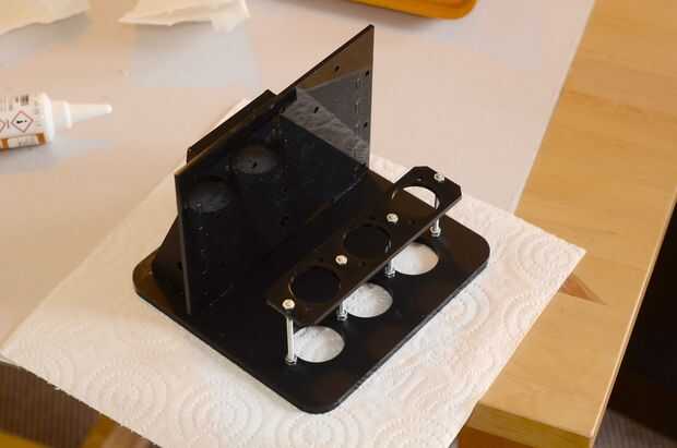 Todos los nuevos elementos de Recuadro de eventos de cuenta regresiva (fotón tablero, tubo de Nixie, tablero de NFC tag reader) son fijos en el nuevo marco. Este marco también se utiliza como un panel frontal de nuevo. Es un montaje de un conjunto nuevo de 3mm y piezas de plexiglás amarillo. Estos son lindos hacia fuera con un cortador del laser, entonces todas las piezas están listas para ser pegados en su lugar después de una rápida verificación para ajuste.