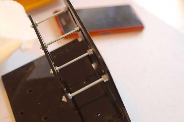 No faltan poner los cuatro tornillos M3x50. Este tornillos se utilizan para poner en marcha la pieza de plexiglás con función de sostener los tubos Nixie.