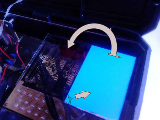-Coloque la tabla desnuda sobre el vidrio y el lado de cobre hacia el panel led.