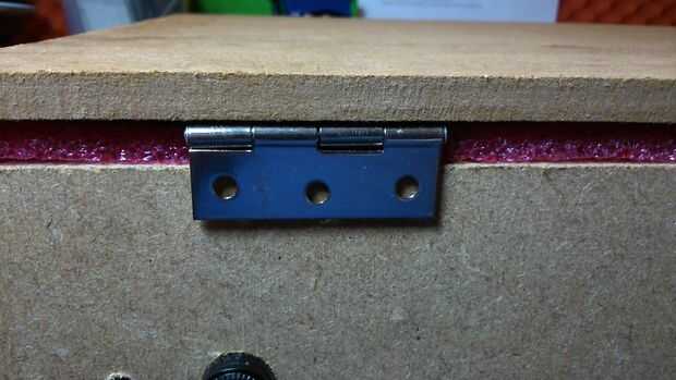 Para el cerramiento superior, corte la espuma plástica según la dimensión de la Junta. Pegue la espuma como se muestra en las fotos usando la cinta de doble cara. Instale las bisagras.