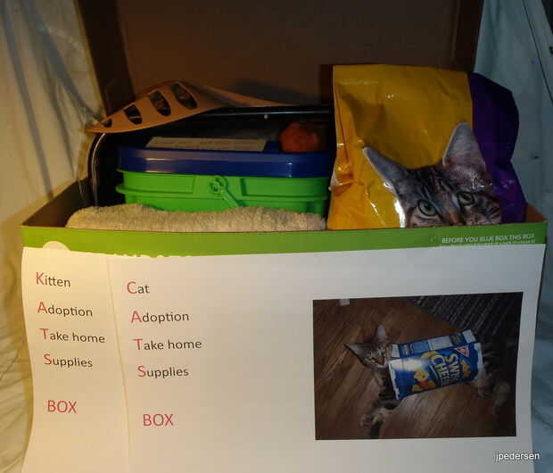El cartel en el exterior de la caja indica si si es para un gato o un gatito. La imagen es de "Sol" cuando ella era mucho más pequeña.